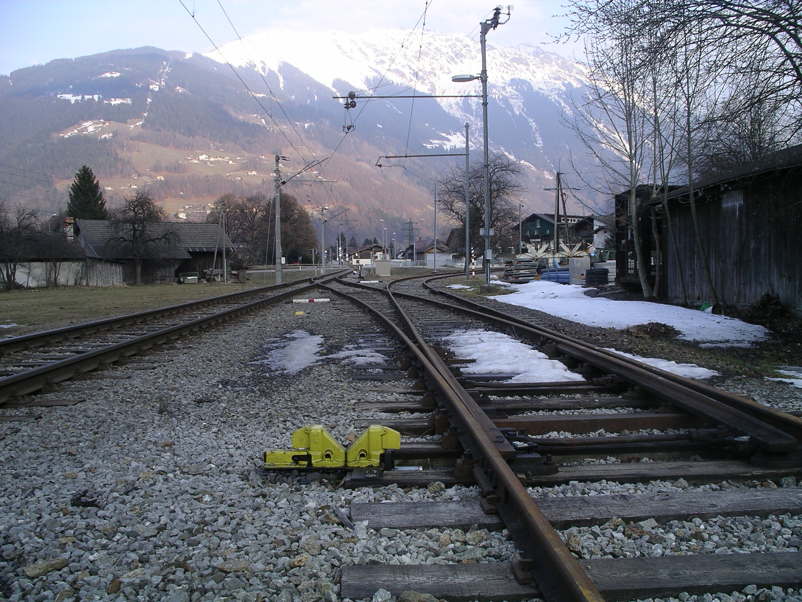 Anschlußstelle / Abzweig: Links die Anlage der Montafoner Bahn Richtung Schruns, rechts Abzweig zur Brücke
